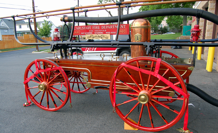 The Carlstadt Fire Department is the proud owner of an 1865 James P. Smith Handpumper. The Handpumper was custom designed and built for Edmonds Hose Company Number One, of the Hudson New York Fire Department. The Handpumper is of "piano box" style and has two 2 1/2 inch discharge’s.